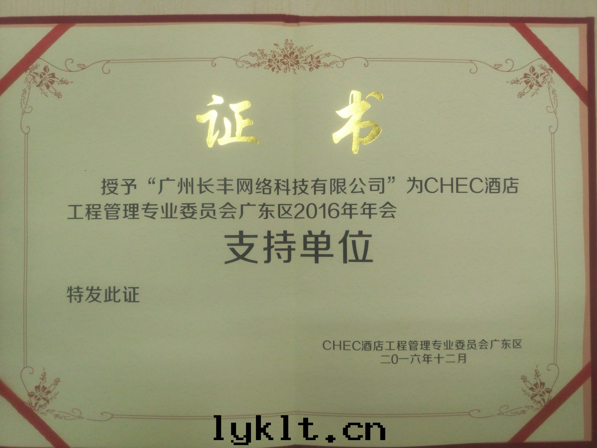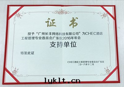 2016年(nián)廣東(dōng)區(qū)年(nián)会(huì) 荣譽證書(shū)